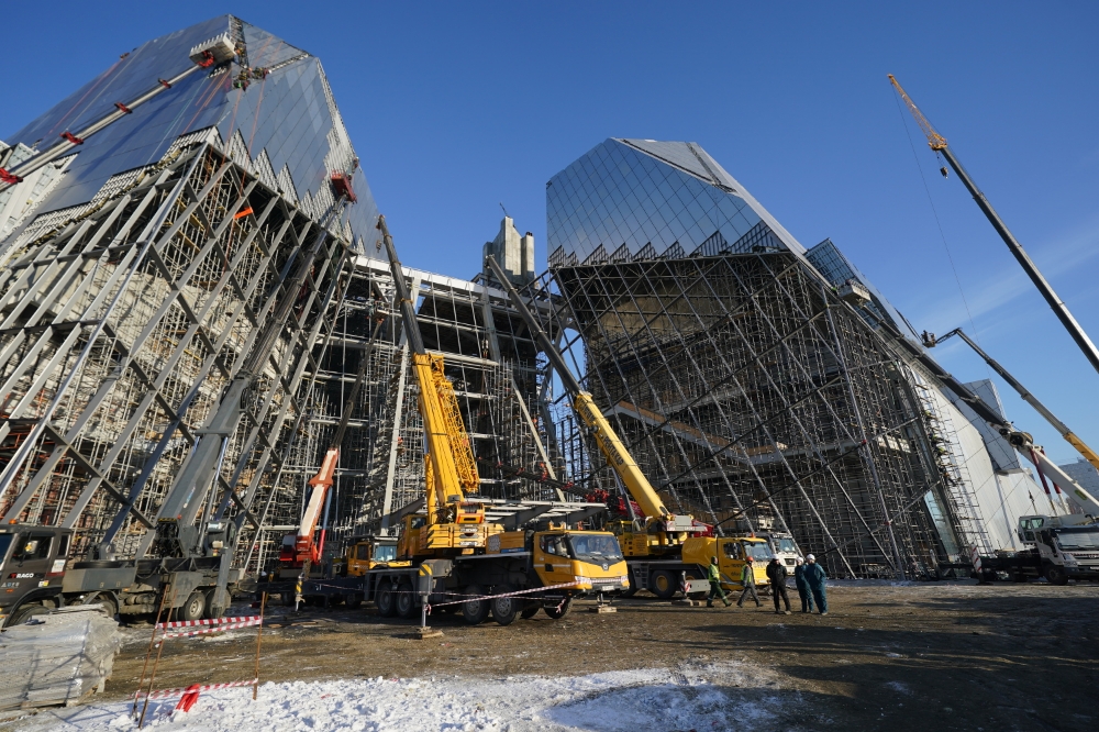 На строительной площадке Театра оперы и балета, рассчитанного на 950 мест, завершен важный этап возведения несущих конструкций. После завершения монтажа каркаса и монолитных работ продолжается установка уникальной шаростержневой конструкции и многослойного фасада с витражами. Параллельно с созданием внешнего облика театра внутри здания идут отделочные процессы: рабочие утепляют стены, возводят перегородки, наносят штукатурку и прокладывают инженерные сети. Уже смонтирована большая часть эскалаторов и начата установка лифтов.
