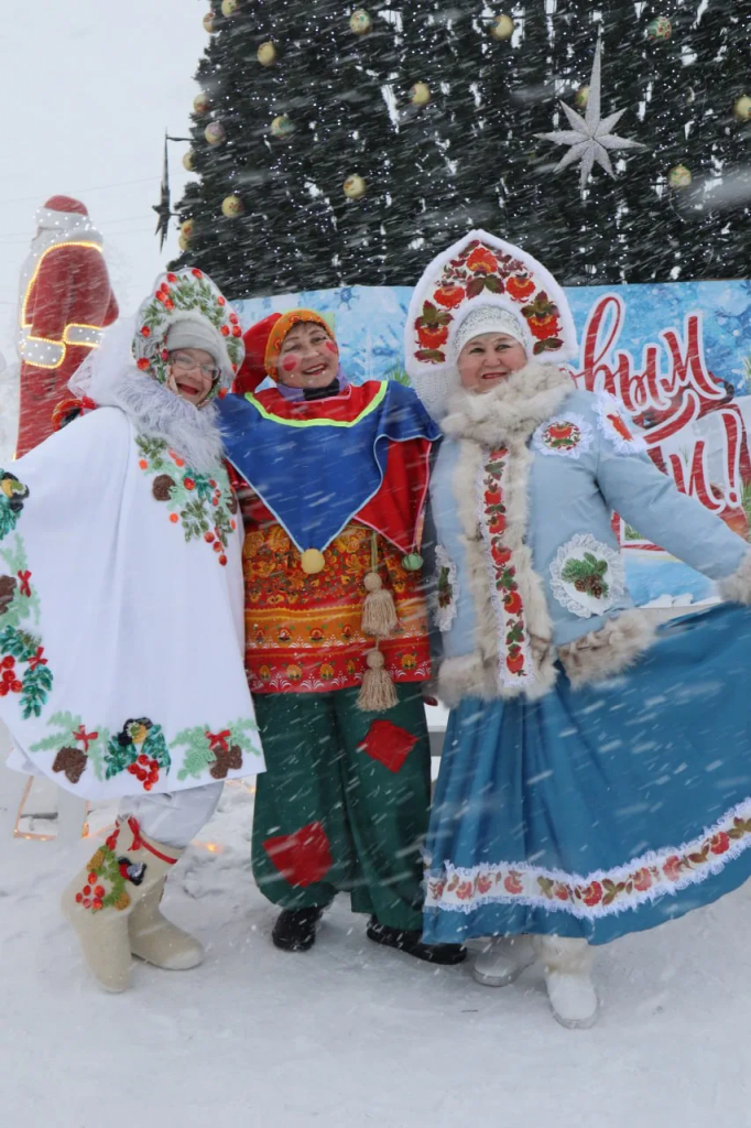 Развлекательная программа с играми и традиционными русскими забавами, ярмарка новогодней сувенирной продукции, фотозоны в стиле сибирской росписи – все это создавало новогоднее настроение, несмотря на разбушевавшуюся метель!
