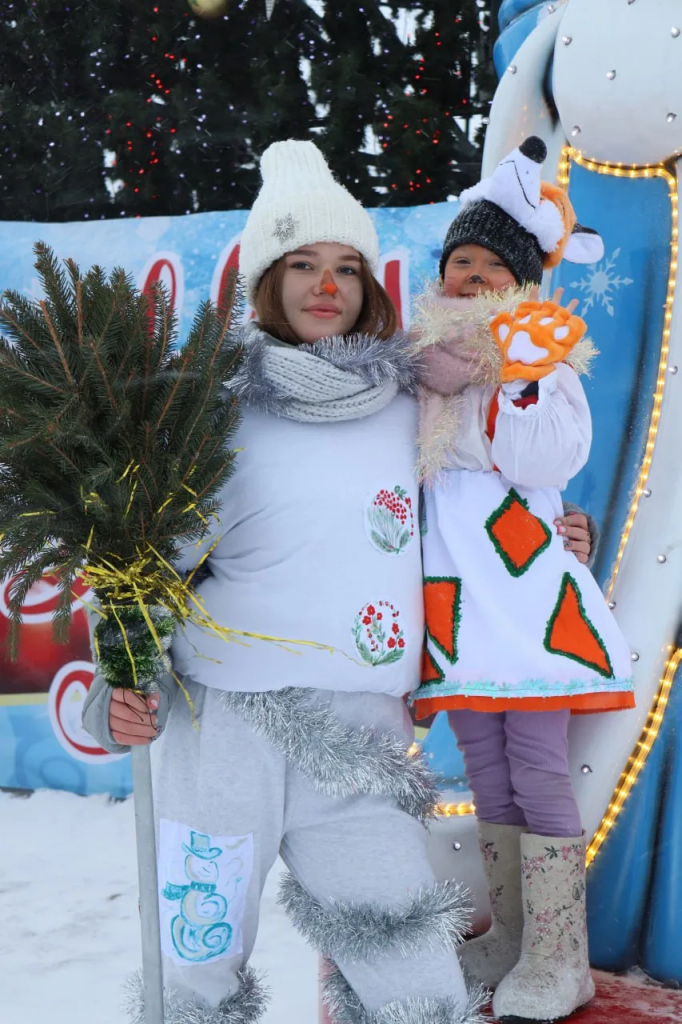 Площадь была похожа на настоящую предновогоднюю сказку, главными героями которой стали взрослые и дети в ярких, оригинальных и креативных костюмах с элементами сибирской росписи.