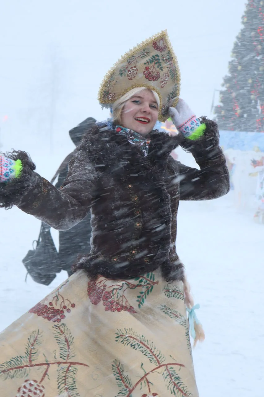 Развлекательная программа с играми и традиционными русскими забавами, ярмарка новогодней сувенирной продукции, фотозоны в стиле сибирской росписи – все это создавало новогоднее настроение, несмотря на разбушевавшуюся метель!